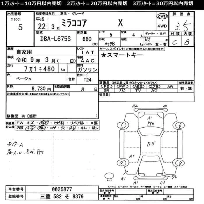 Стартовая цена авто на аукционе 20 000 ¥