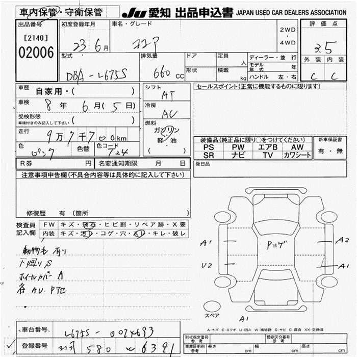 Статус выставлен на аукцион Лот 2006 Аукцион JU Aichi Дата аукциона 25.12.2025
