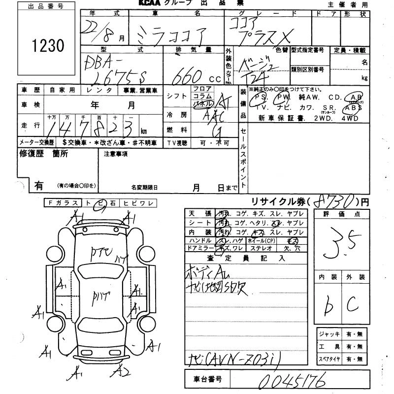 DAIHATSU MIRA COCOA 2010 г., лот № 1230