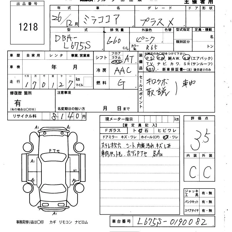 DAIHATSU MIRA COCOA 2014 г., лот № 1218