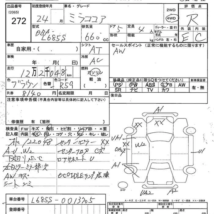 DAIHATSU MIRA COCOA 2012 г., лот № 272