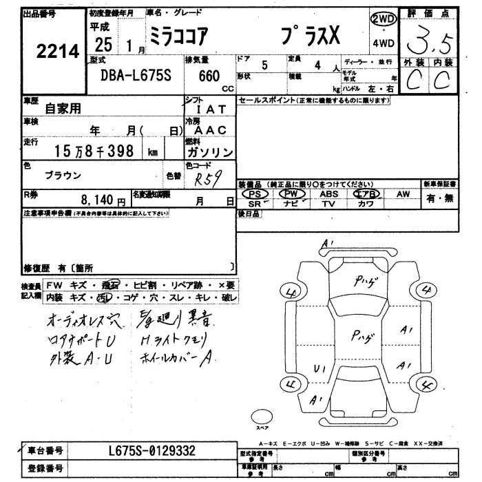 DAIHATSU MIRA COCOA 2013 г., лот № 2214
