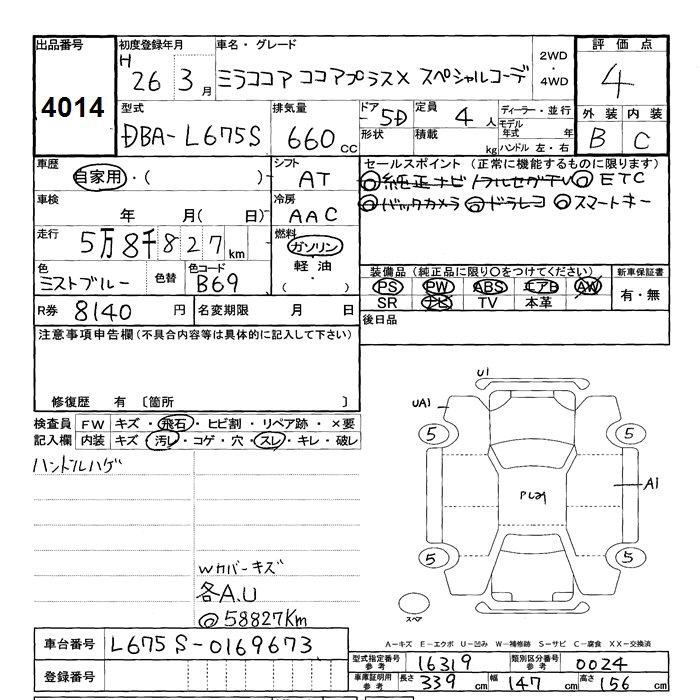 Год выпуска2014 Пробег 59 000 км КузовL675S Комплектация PLUS X SPECIAL KO-TE