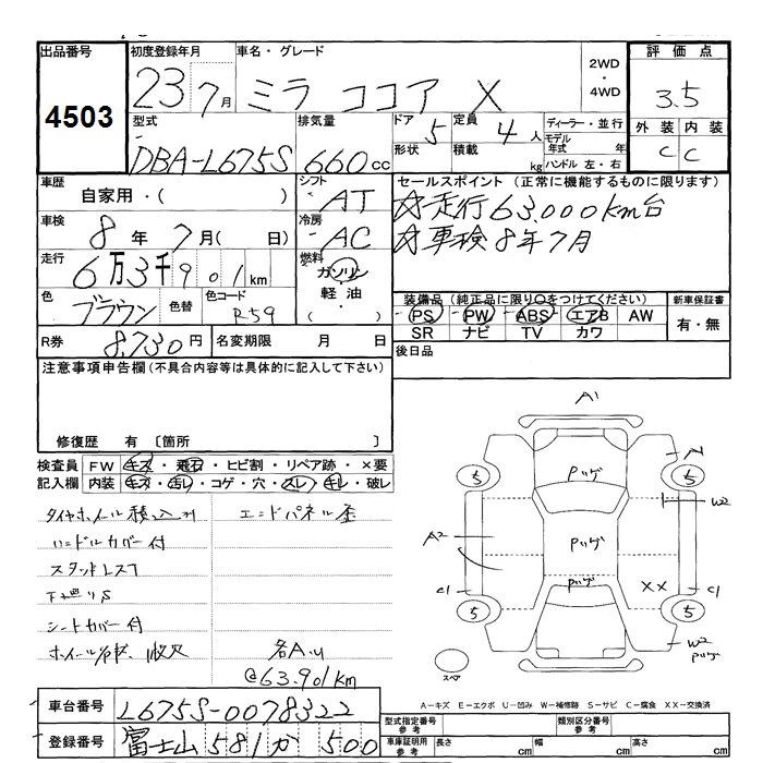 Статус выставлен на аукцион Лот 4503 Аукцион JU Shizuoka Дата аукциона 10.03.2026