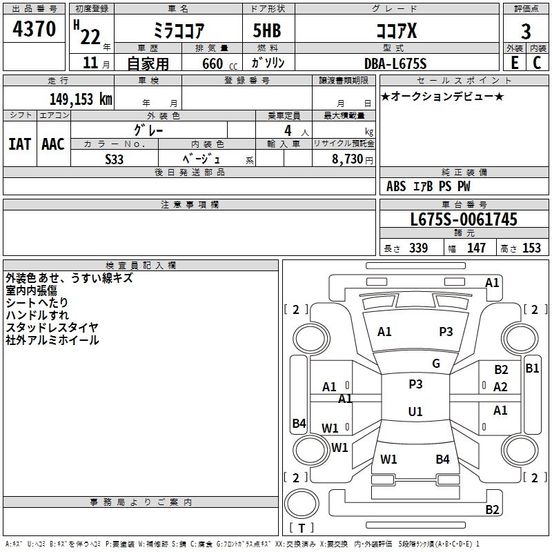 Статус выставлен на аукцион Лот 4370 Аукцион TAA Hiroshima Дата аукциона 10.03.2026