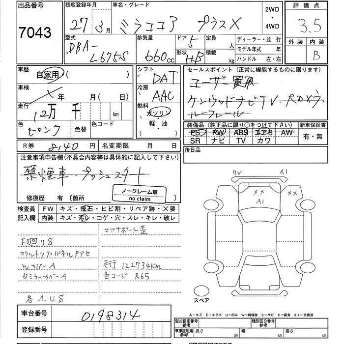 DAIHATSU MIRA COCOA 2015 г., лот № 7043