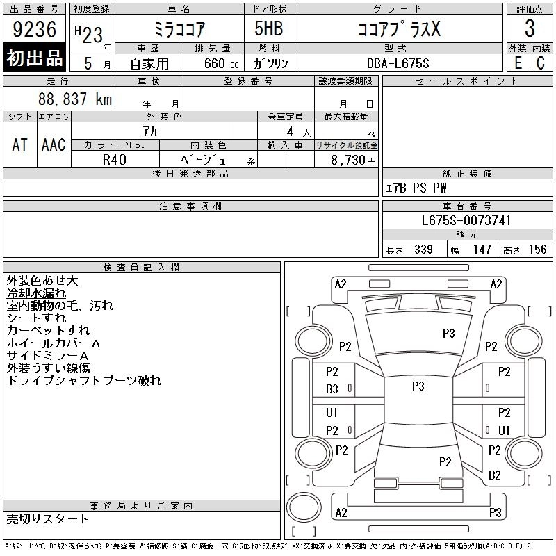 Статус выставлен на аукцион Лот 9236 Аукцион CAA Chubu Дата аукциона 11.03.2026