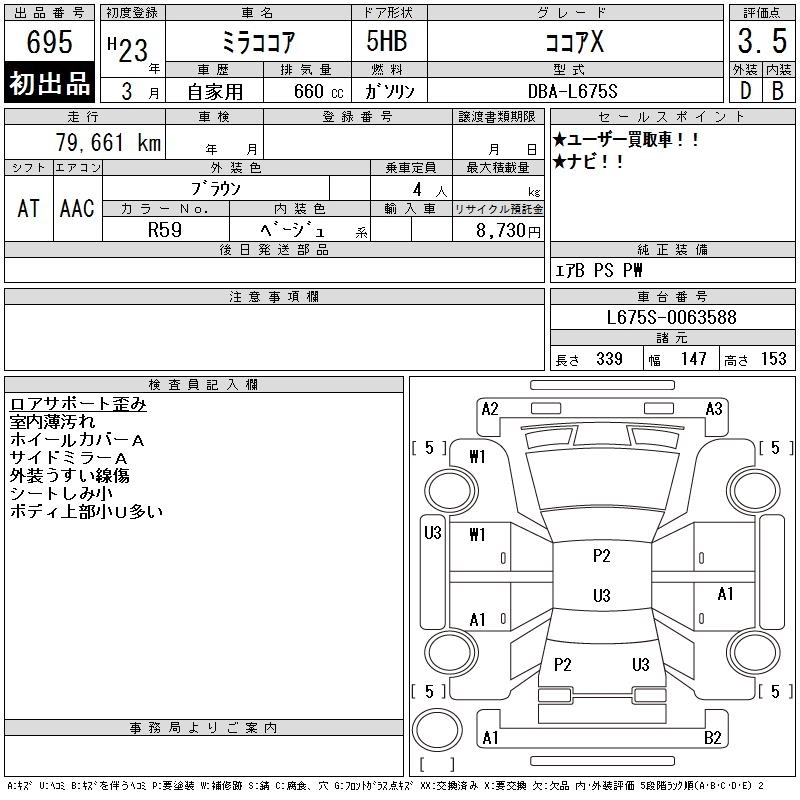 Год выпуска2011 Пробег 80 000 км КузовL675S Комплектация COCOA X