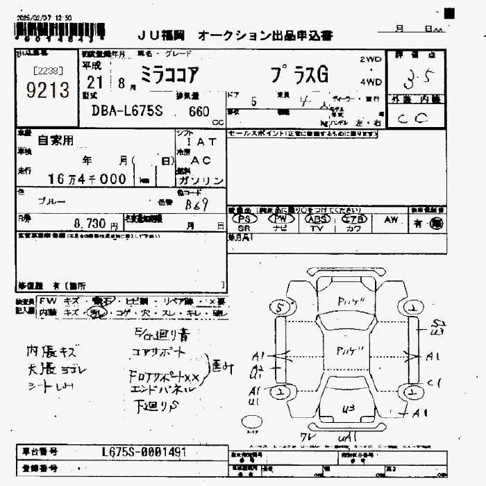 Статус выставлен на аукцион Лот 9213 Аукцион JU Fukuoka Дата аукциона 13.03.2026