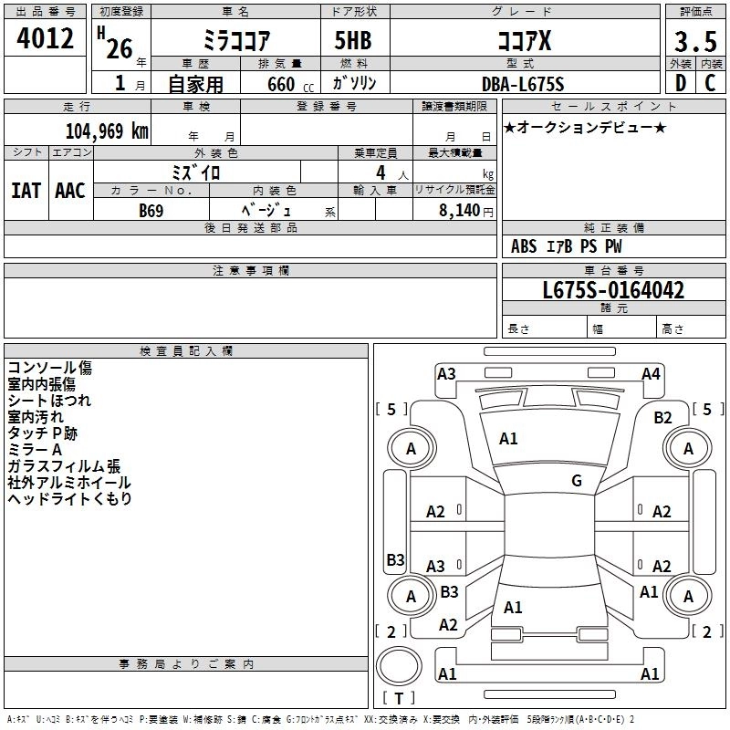DAIHATSU MIRA COCOA 2014 г., лот № 4012
