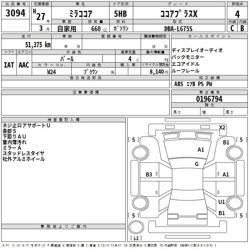 DAIHATSU MIRA COCOA 2015 г., лот № 3094