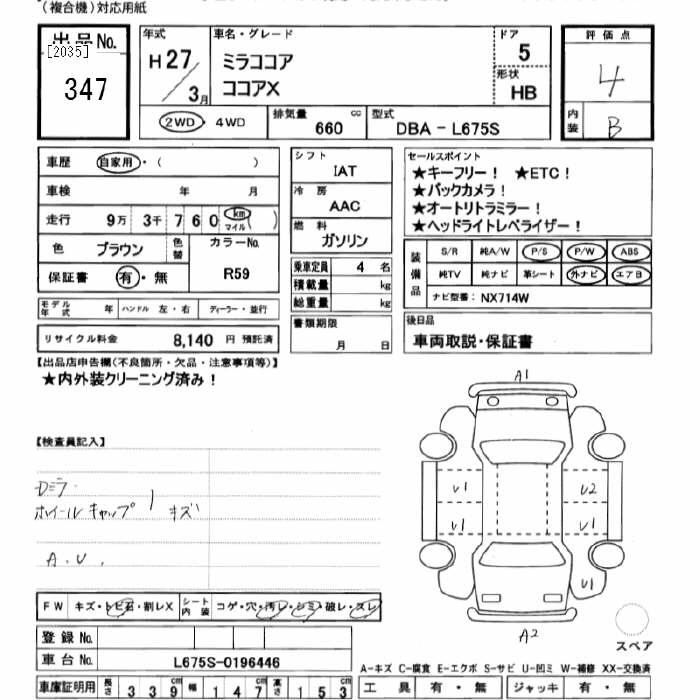 DAIHATSU MIRA COCOA 2015 г., лот № 347