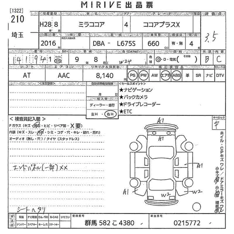 Статус выставлен на аукцион Лот 210 Аукцион MIRIVE Saitama Дата аукциона 18.03.2026