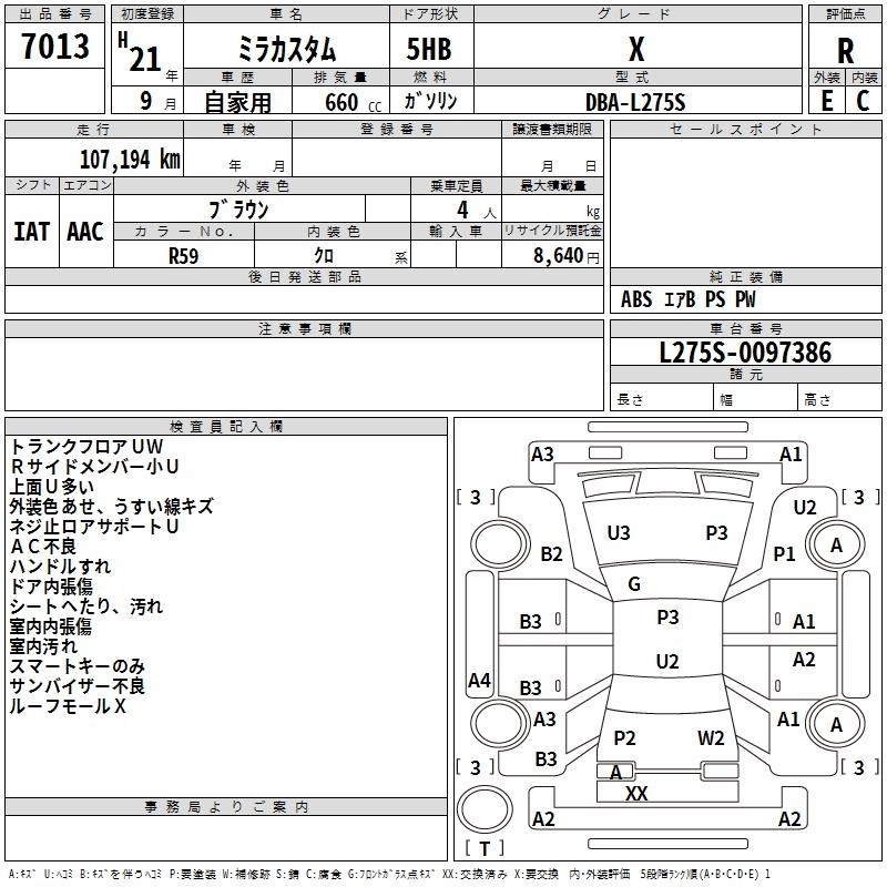 DAIHATSU MIRA CUSTOM 2009 г., лот № 7013