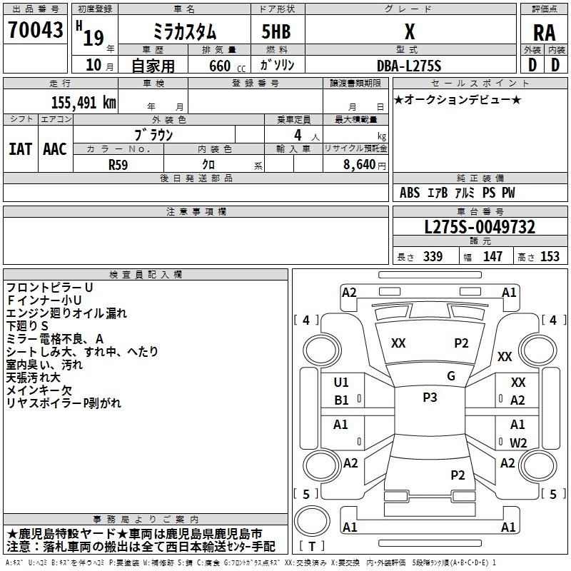 DAIHATSU MIRA CUSTOM 2007 г., лот № 70043