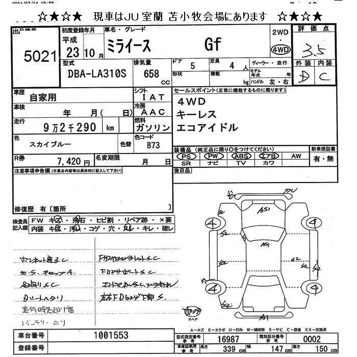 DAIHATSU MIRA E:S 2011 г., лот № 5021