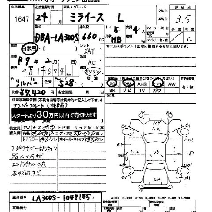 Стартовая цена авто на аукционе 30 000 ¥