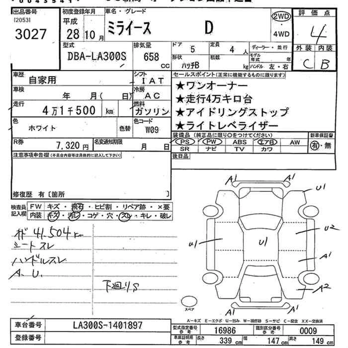 DAIHATSU MIRA E:S 2016 г., лот № 3027