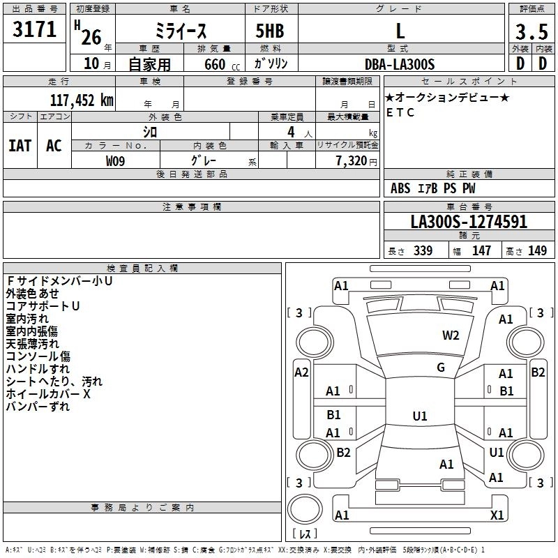 DAIHATSU MIRA E:S 2014 г., лот № 3171