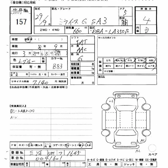 DAIHATSU MIRA E:S 2017 г., лот № 157