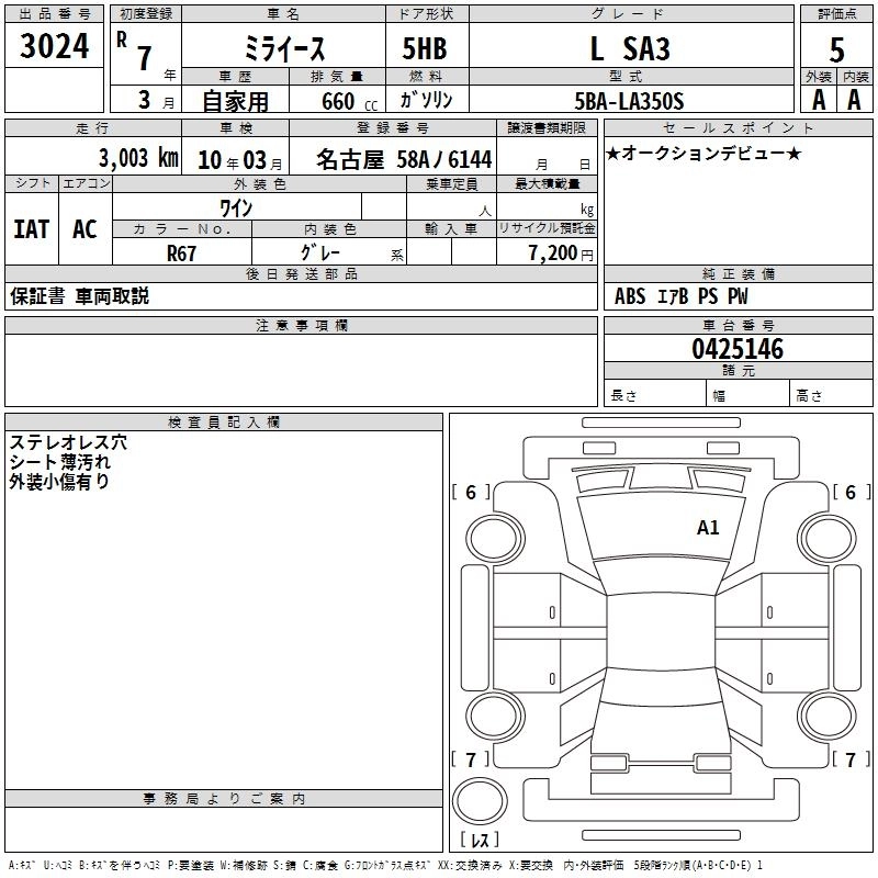 Статус продан Лот 3024 Аукцион TAA Chubu Дата аукциона 30.10.2025