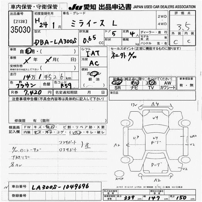 DAIHATSU MIRA E:S 2012 г., лот № 35030