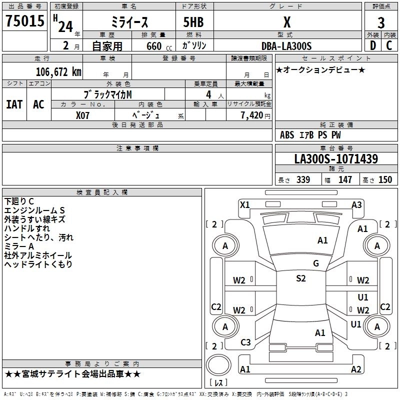 DAIHATSU MIRA E:S 2012 г., лот № 75015