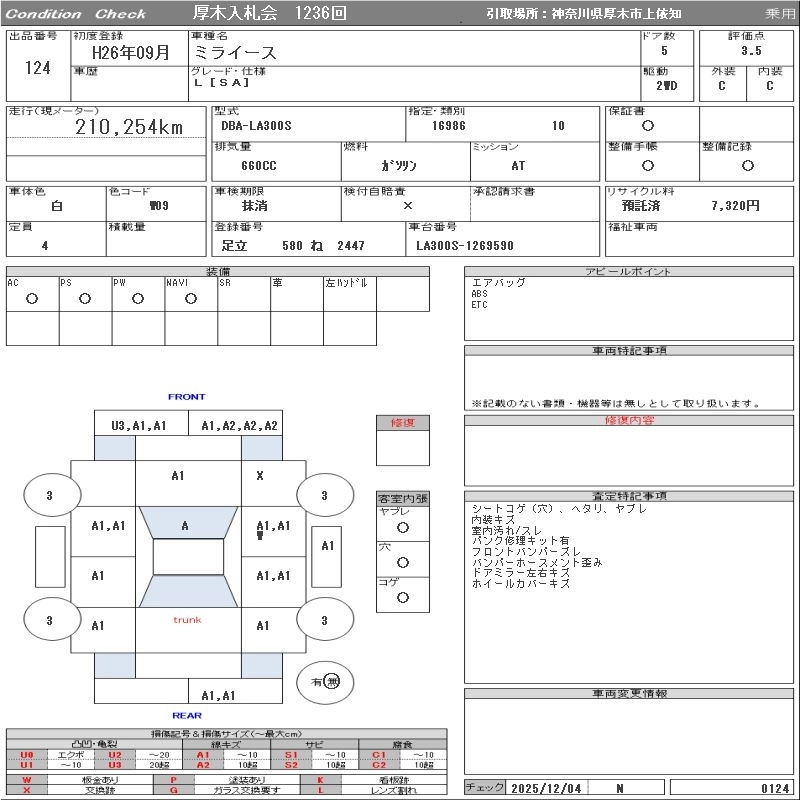 Статус продан Лот 124 Аукцион ORIX Atsugi Дата аукциона 10.12.2025