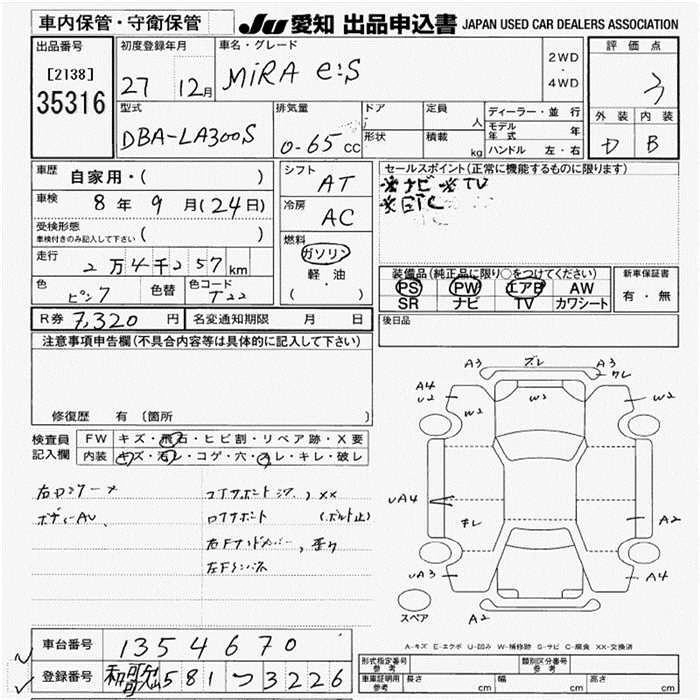 DAIHATSU MIRA E:S 2015 г., лот № 35316