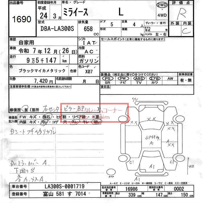 Статус продан Лот 1690 Аукцион JU Toyama Дата аукциона 11.12.2025