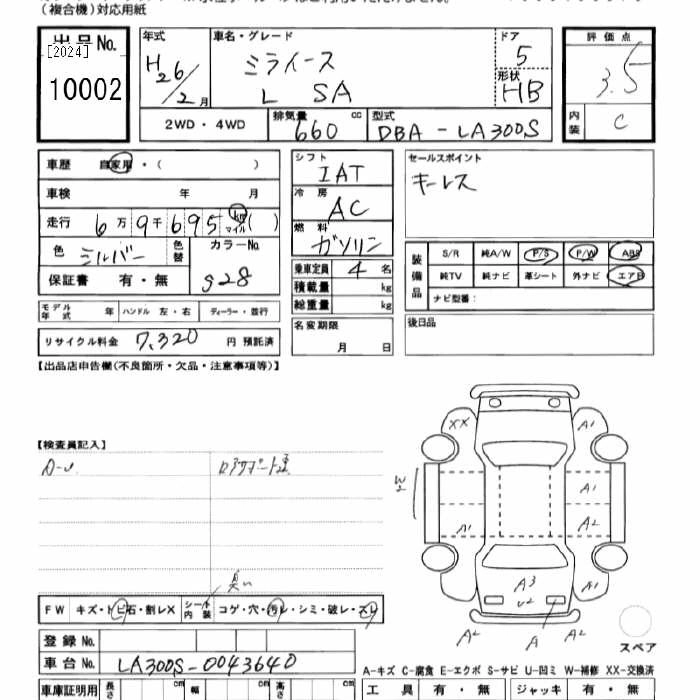 Год выпуска2014 Пробег 69 000 км КузовLA300S КомплектацияL SA
