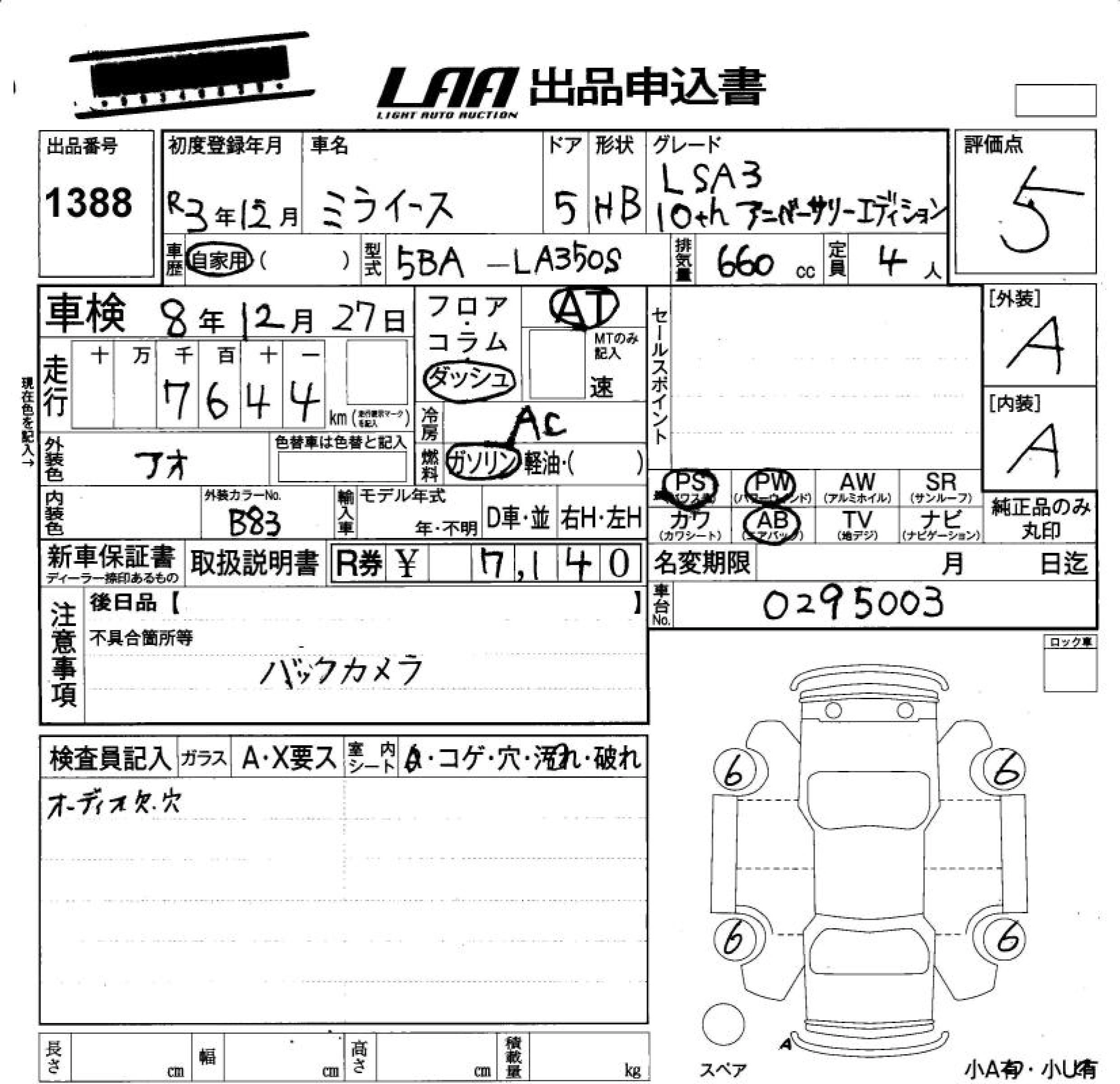Статус выставлен на аукцион Лот 1388 Аукцион LAA Okayama Дата аукциона 19.12.2025