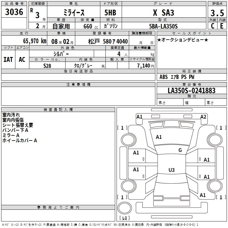 Статус выставлен на аукцион Лот 3036 Аукцион TAA Kantou Дата аукциона 25.12.2025