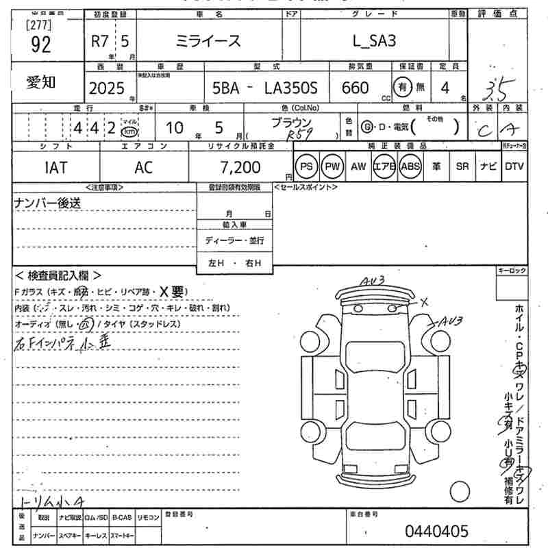 Статус выставлен на аукцион Лот 92 Аукцион MIRIVE Aichi Дата аукциона 06.02.2026