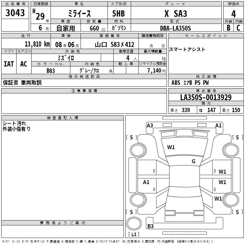DAIHATSU MIRA E:S 2017 г., лот № 3043