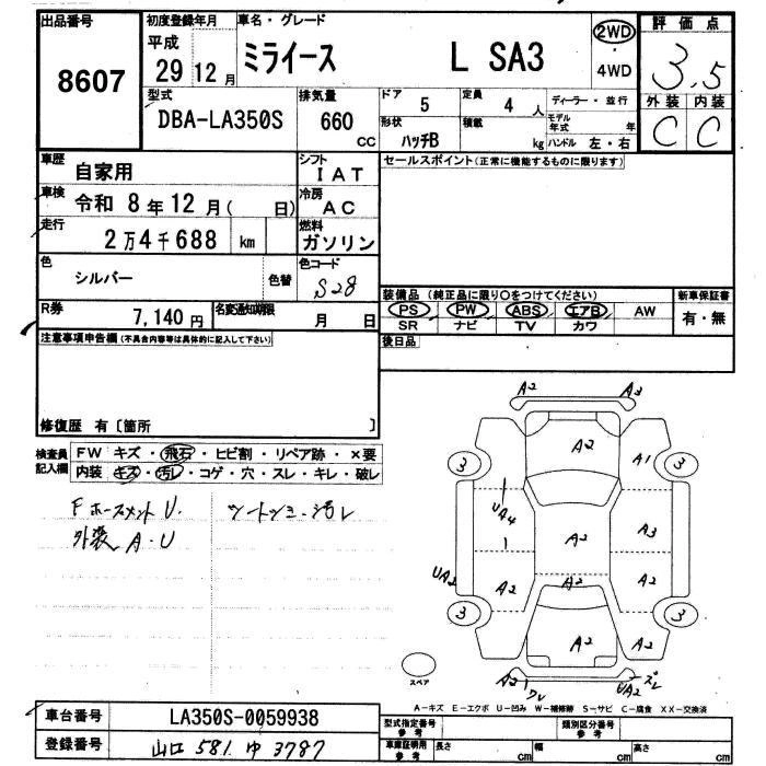 DAIHATSU MIRA E:S 2017 г., лот № 8607