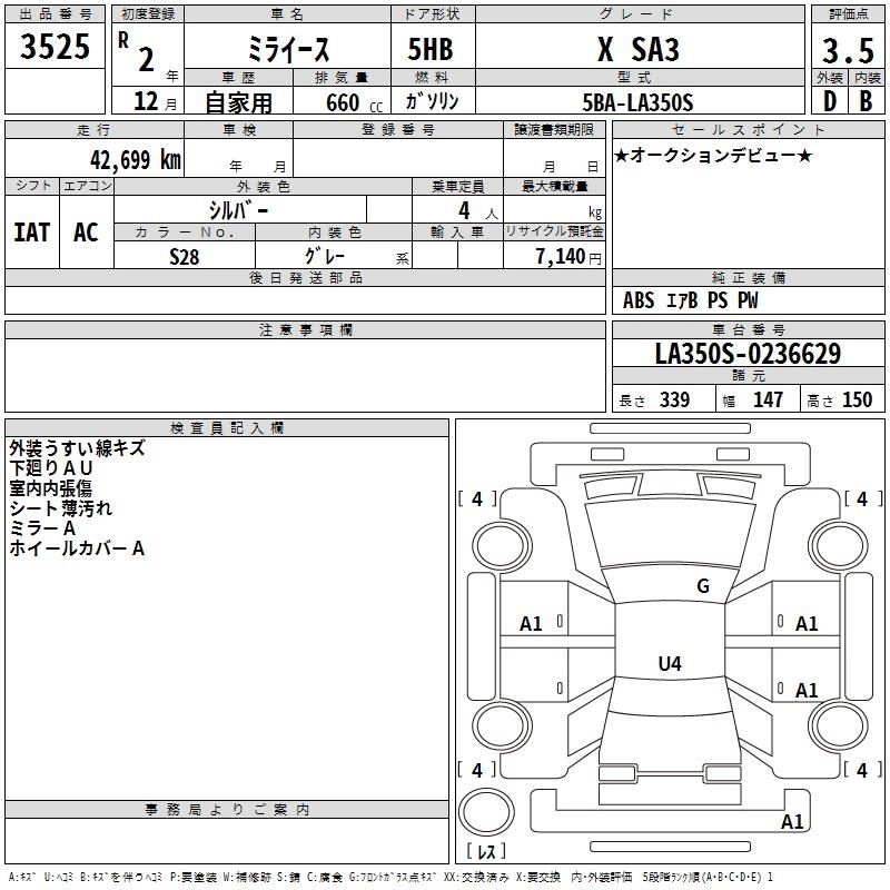 DAIHATSU MIRA E:S 2020 г., лот № 3525