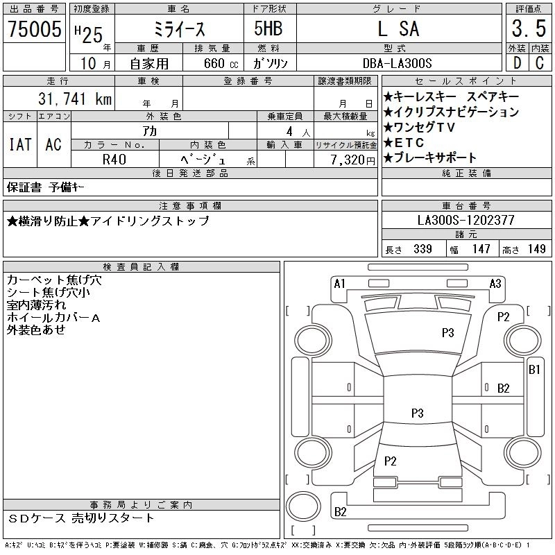 DAIHATSU MIRA E:S 2013 г., лот № 75005
