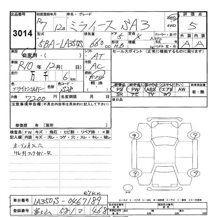 Статус продан Лот 3014 Аукцион JU Shizuoka Дата аукциона 10.03.2026