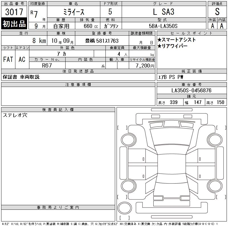 Статус выставлен на аукцион Лот 3017 Аукцион CAA Chubu Дата аукциона 11.03.2026