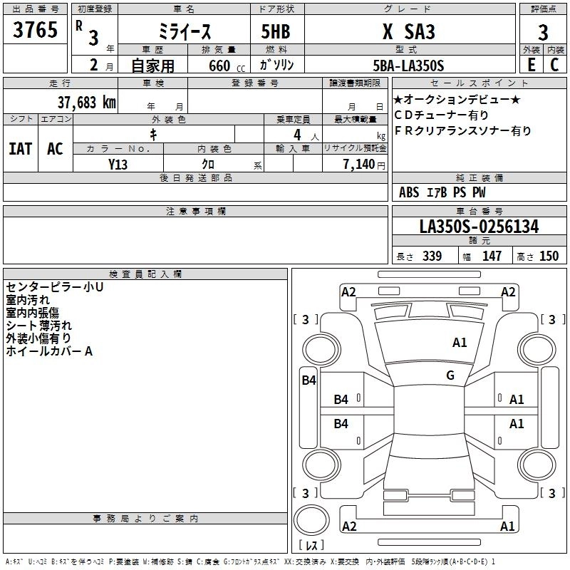 Статус продан Лот 3765 Аукцион TAA Kyushu Дата аукциона 10.03.2026