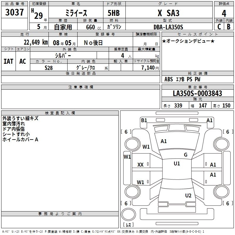 DAIHATSU MIRA E:S 2017 г., лот № 3037