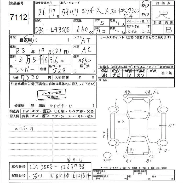 DAIHATSU MIRA E:S 2014 г., лот № 7112