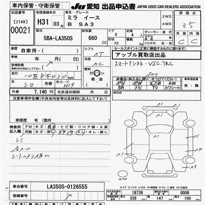Статус выставлен на аукцион Лот 21 Аукцион JU Aichi Дата аукциона 12.03.2026