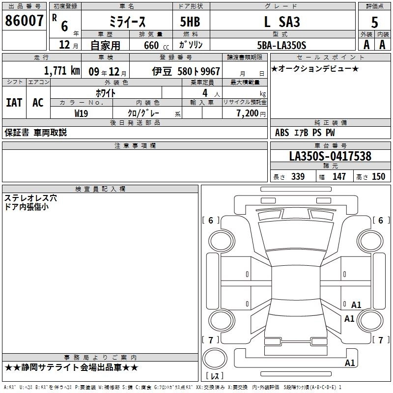 Статус выставлен на аукцион Лот 86007 Аукцион TAA Chubu Дата аукциона 12.03.2026