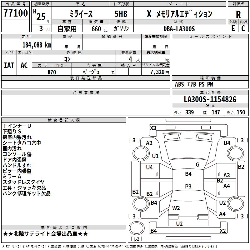 Статус выставлен на аукцион Лот 77100 Аукцион TAA Chubu Дата аукциона 12.03.2026