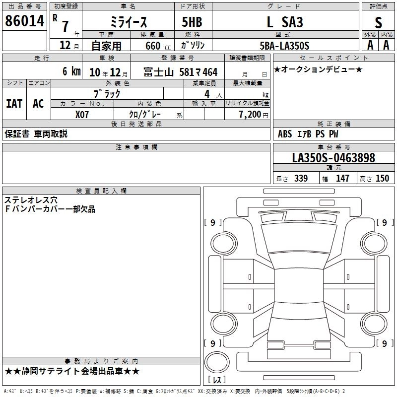 Статус выставлен на аукцион Лот 86014 Аукцион TAA Chubu Дата аукциона 12.03.2026