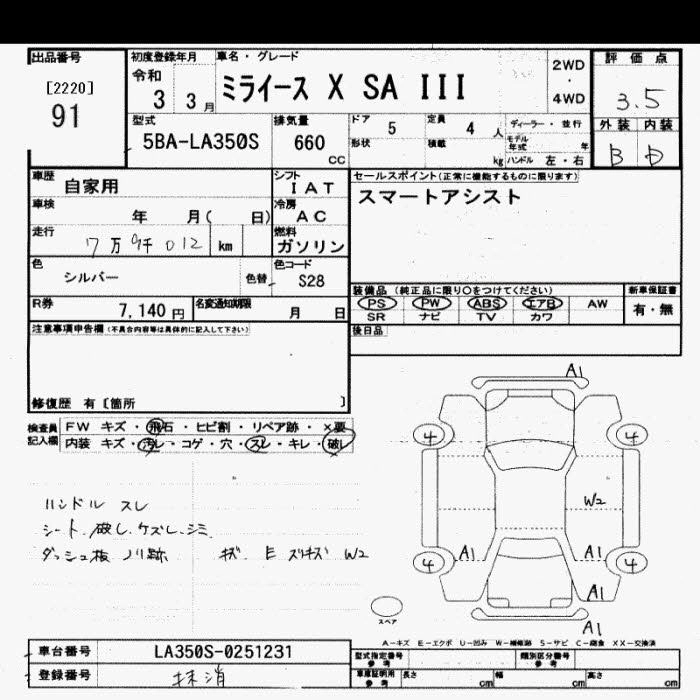 Статус не продан Лот 91 Аукцион JU Saitama Дата аукциона 10.03.2026