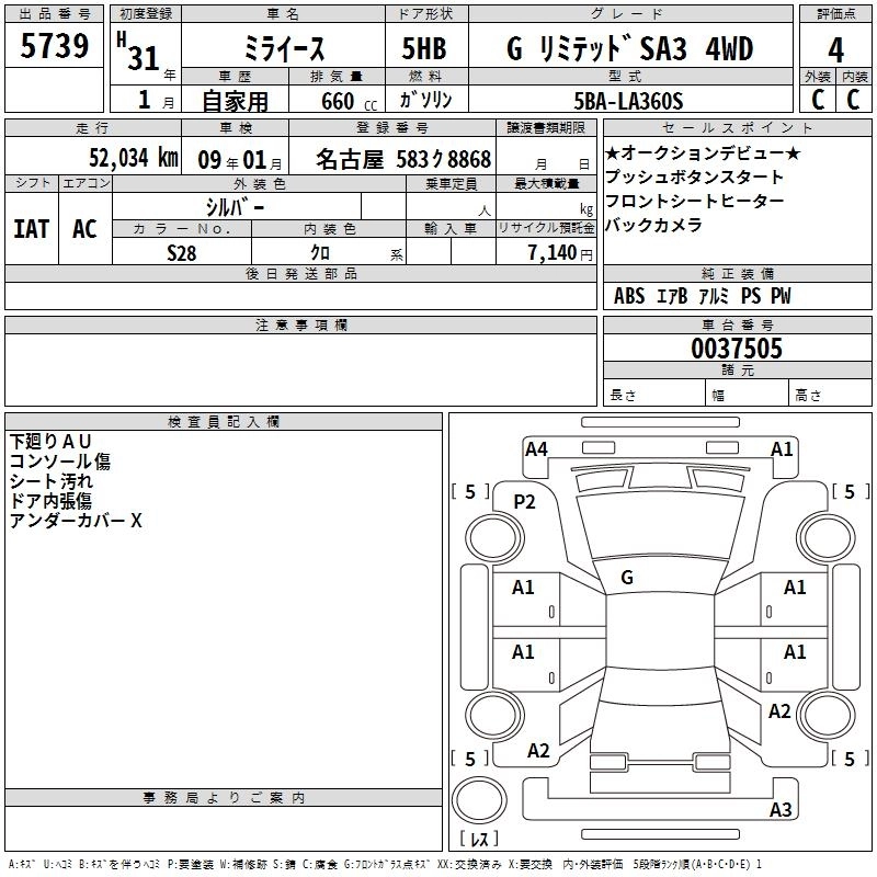 Статус выставлен на аукцион Лот 5739 Аукцион TAA Chubu Дата аукциона 12.03.2026