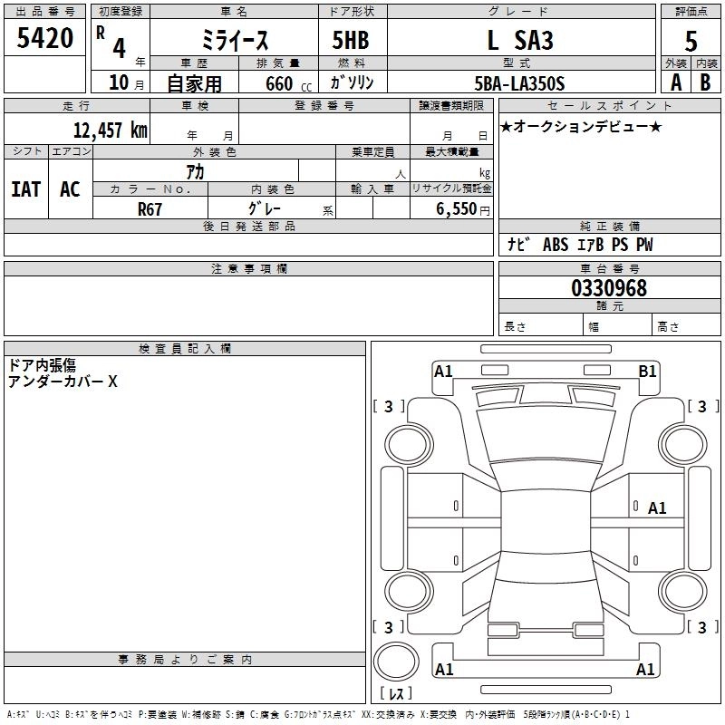 Статус выставлен на аукцион Лот 5420 Аукцион TAA Chubu Дата аукциона 12.03.2026